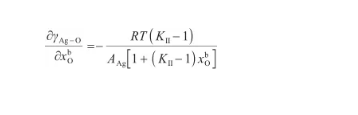 在液態(tài)Ag-O系中,O原子的化學(xué)勢(μO)表示為: