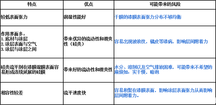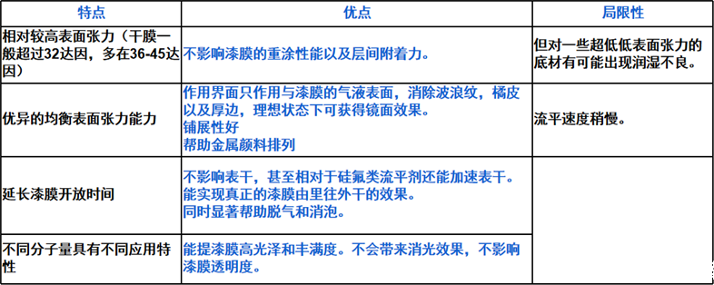 3.1各類(lèi)流平劑的基本作用原理以及特性