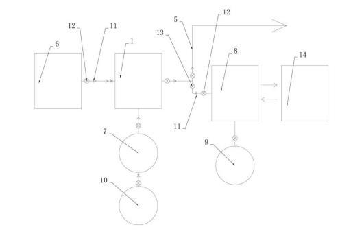 本發(fā)明的一種基于微納米氣泡的井口注氣裝置在使用時(shí),微納米氣泡在油層流動(dòng)過(guò)程中,可以改變油水界面張力,降低原油的粘度,增大油藏的滲透率,從而提高油水的相對(duì)滲透率,進(jìn)而提高原油的采收率;而加藥泵能夠?qū)ψ⑺⑷胨幰海瑥亩纳谱⑺艿馈⒂蜌馓餇顩r,提高采油率;同時(shí)第二旋風(fēng)分離器能夠?qū)⒊叽巛^大的微納米氣泡分離出去,從而保證注入井下的微納米氣泡的尺寸,進(jìn)而確保驅(qū)油效果,提升采油率。
