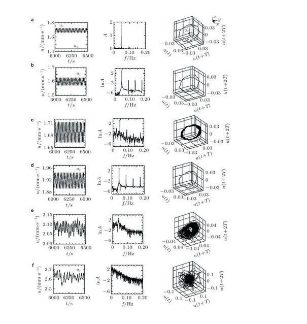 (2)目前關(guān)于液層界面張力梯度驅(qū)動對流向湍流的超臨界轉(zhuǎn)捩在數(shù)值方法上主要有流動時序數(shù)據(jù)的分析和分岔問題的數(shù)值算法。流動宏觀量的時序數(shù)據(jù)來自實驗結(jié)果或者直接數(shù)值模擬,對于后者,需要對于不同參數(shù)分別進行數(shù)值模擬,再通過時間序列頻譜及其混沌特性的定量計算分析流動轉(zhuǎn)捩規(guī)律,即在大量的離散的數(shù)據(jù)序列中尋找分岔點,故此過程比較繁瑣。而通過構(gòu)造分岔方程對分岔進行數(shù)值計算的方法雖然可以一步到位,但是在選取分岔方程,解高維線性、非線性方程等過程中均需要根據(jù)具體的流動模型進行調(diào)整,具有一定難度,且對于更加復(fù)雜的流動模式需要更大的計算量,用此算法也無法直接計算得到混沌解。上述兩種方法各有優(yōu)缺點,目前在轉(zhuǎn)捩過程的數(shù)值研究中較為常用的仍是在不同參數(shù)下進行直接數(shù)值模擬,而后對大量數(shù)據(jù)進行頻譜分析,識別分岔點;在直接對分岔進行數(shù)值計算的研究中,也常常需要通過直接數(shù)值模擬來驗證分岔得到的解的可靠性與準確性,在今后的研究中可考慮進一步將兩種方法結(jié)合運用,互相補充、驗證。