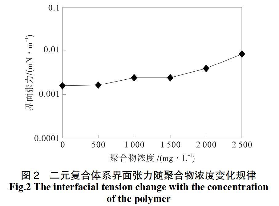 將無堿二元復(fù)合體系的界面張力隨聚合物濃度的變化規(guī)律繪制如圖2所示。