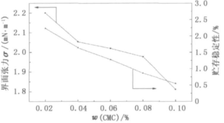 圖4羧甲基纖維素鈉對(duì)油水界面張力和貯存穩(wěn)定性的影響