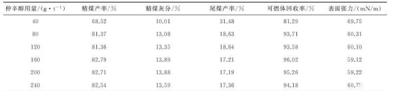 表3仲辛醇對浮選和表面張力的影響試驗(yàn)結(jié)果