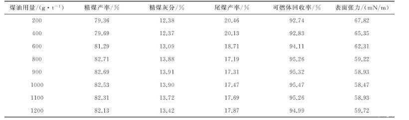 表2煤油對浮選和表面張力的影響試驗(yàn)結(jié)果表