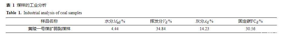 將EMI原液稀釋至質(zhì)量分數(shù)分別為0.1%、0.2%、0.4%、0.6%、0.8%、1.0%、2.0%、4.0%、6.0%、8.0%的混合溶液。實驗煤樣選取黃陵一號煤礦弱黏煤樣,煤樣工業(yè)分析結果見表1。在制備煤塵樣品時,根據(jù)有關文獻對黃陵一號煤礦綜采工作面煤塵粒徑分布進行檢測,并結合國際標準化組織對粉塵粒徑的定義,以及實驗室制備條件,去除煤塊外表皮,使用破碎機對煤心破碎60 s,用160、200、300、400目標準工業(yè)篩對煤粉進行篩分,共篩分出0.075~0.096、0.048~<0.075、0.038~<0.048、<0.038 mm共4個粒度范圍的樣品進行實驗,其中煤塵粒徑與煤樣編號見表2。煤樣制備完成后,將其放入80℃的真空干燥箱,真空干燥8 h后密封保存以備實驗使用。