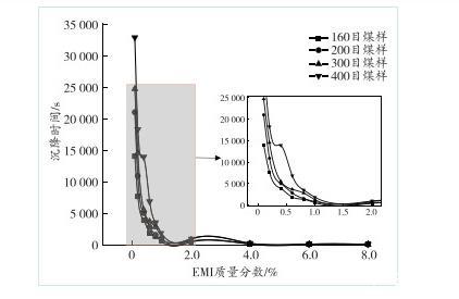 圖7煤塵沉降時間與EMI質(zhì)量分?jǐn)?shù)的關(guān)系