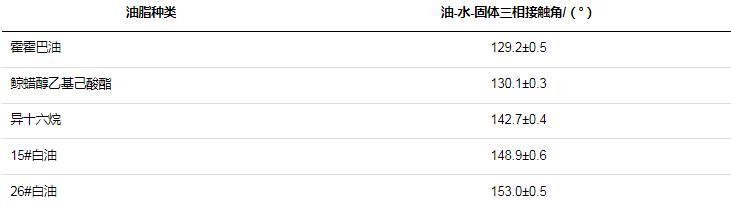 表1不同油脂的油-水-固體三相接觸角