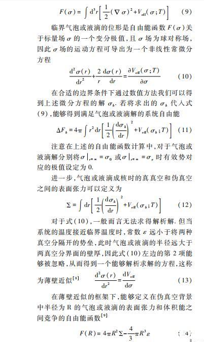 在上述對(duì)氣泡動(dòng)力學(xué)研究的理論分析中,標(biāo)量場(chǎng)σ的真空平均值可以看做序參數(shù),并且系統(tǒng)的自由能函數(shù)能夠被定義為