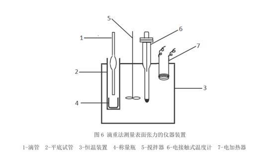 滴重法是利用液滴重量與支持它的表面張力的力相平衡進(jìn)行測(cè)定的試驗(yàn)。主要也是因?yàn)楸砻鎻埩εc液滴重量、滴管半徑、液體密度及重力加速度相關(guān)。滴重法要使用到的儀器主要玻璃滴管、恒溫裝置、平底試管、稱量瓶、攪拌器、電接觸式溫度計(jì)、電加熱器等。試驗(yàn)步驟也是先配置測(cè)定溶液,清洗測(cè)量?jī)x器,然后安裝好實(shí)驗(yàn)裝置,啟動(dòng)攪拌器,調(diào)節(jié)接觸溫度計(jì),至所需溫度,使水恒溫半小時(shí),要求普通溫度計(jì)的誤差不超過(guò)±0.5 ℃。恒溫足夠時(shí)間以消除平底試管內(nèi)與水溫的差,一般溫差小于 1 ℃。用分析天平稱得潔凈干燥的稱量瓶空瓶重。放入浸入恒溫裝置的平底試管內(nèi)。將橡皮管套于移液管的未加工端,用吸球?qū)⒋郎y(cè)液吸入移液管內(nèi),用夾子夾住橡皮管不使待測(cè)液滴下然后將移液管垂直懸掛入恒溫裝置內(nèi)的試管中,但不可與稱量瓶接觸。恒溫半小時(shí)后,慢慢旋開夾子,讓液體自然滴下,調(diào)節(jié)水滴的下落速度至每滴 100-120 s。至20 滴時(shí)擰緊夾子,取出移液管。將稱量瓶稱重,減去空的稱量瓶重量,求得每液滴的重量。在同一溫度下重復(fù)兩次。對(duì)于表面張力能隨時(shí)間迅速變化的或者界面能夠迅速相互飽和的界面,測(cè)定精度為±0.1%。