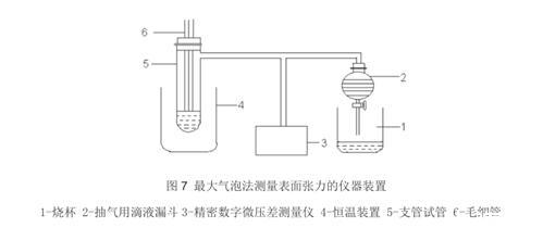 最大壓力氣泡法的原理是將毛細(xì)管端浸入液中,通過(guò)增加內(nèi)壓便產(chǎn)生氣泡,然后從管端成長(zhǎng)的氣泡的最大泡壓可求出液體的表面張力。 最大壓力氣泡法使用的儀器主要為燒杯、抽氣用滴液漏斗、精密數(shù)字微壓差測(cè)量?jī)x、恒溫裝置 、支管試管、毛細(xì)管等。檢測(cè)步驟當(dāng)然也先制樣,然后清洗儀器,之后檢驗(yàn)儀器,調(diào)節(jié)毛細(xì)管或液面高度,使毛細(xì)管口與水面相切。打開活塞抽氣,調(diào)節(jié)抽氣速度,使氣泡由毛細(xì)管尖端成單泡出,且每個(gè)氣泡形成的時(shí)間約為 6s-10s。在形成氣泡的過(guò)程中,液面半徑經(jīng)歷:大→小→大,同時(shí)壓力差計(jì)指示值的絕對(duì)值經(jīng)歷:小→大→小的過(guò)程,記錄下絕對(duì)值最大的壓力差三次,取其平均值。最大壓力氣泡法每次測(cè)量前應(yīng)注意:一定要用待測(cè)溶液清洗支管試管和毛細(xì)管,并振蕩洗滌。