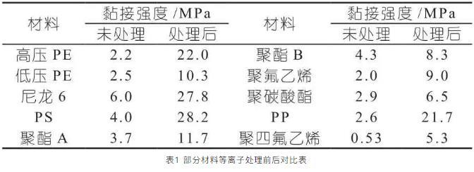 表1部分材料等離子處理前后對(duì)比表