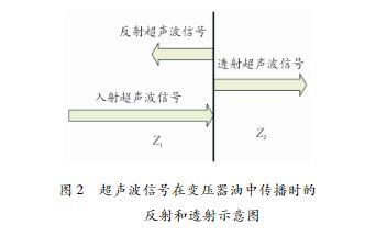 圖2超聲波信號(hào)在變壓器油中傳播時(shí)的反射和透射示意圖