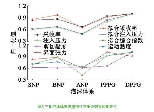 圖8三相泡沫體系溶液特性與驅(qū)油效果的相關(guān)性