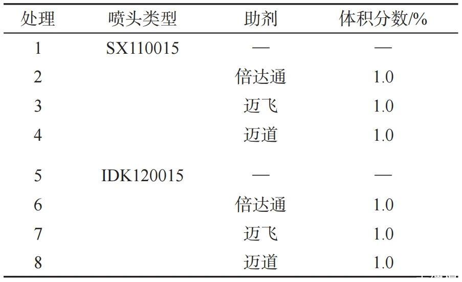 1.2.3助劑及噴頭類型對(duì)霧滴沉積密度和覆蓋率影響的測(cè)定