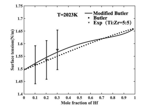 圖2為Ti-Zr-Hf三元合金表面張力的預(yù)測圖;