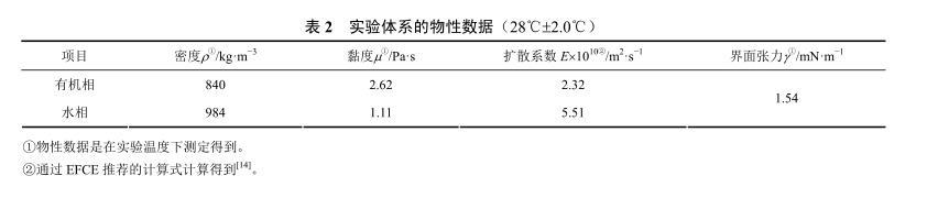 表2實驗體系的物性數(shù)據(jù)(28℃±2.0℃)