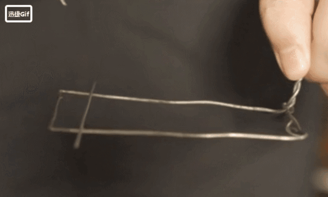 動圖中的鐵絲本來同時受到兩側(cè)肥皂膜的吸引,而當(dāng)一側(cè)的肥皂膜被刺破時,鐵絲立馬滾向另一側(cè),而吸引著它滾動的正是存在于肥皂膜表面的拉力—表面張力。