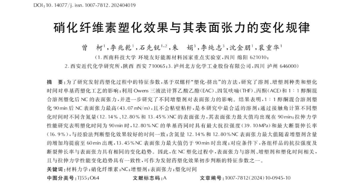 硝化纖維素塑化效果與其表面張力的變化規(guī)律