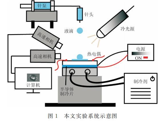 盡管如此,目前針對低表面張力液滴沖擊過冷水平壁面的研究仍有所欠缺。液滴在過冷表面上的沖擊和應用在生活中也十分常見,例如噴霧凍結、高空中的過冷水滴沖擊機翼導致結冰、過冷噴涂等。本文針對乙醇液滴沖擊過冷親水水平壁面這一基本物理現(xiàn)象開展實驗,針對其鋪展動力學行為進行分析與討論,旨在探究低表面張力對液滴沖擊過冷水平壁面的鋪展動力學行為的影響。這一研究有助于加深對固液接觸現(xiàn)象的理解,為更好的控制固液介面接觸提供有效指導。