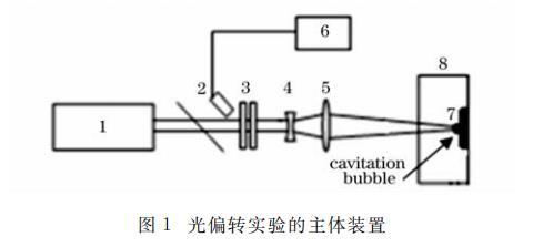 實(shí)驗(yàn)裝置的主體部分如圖1所示,脈沖Nd∶YAG激光1(波長1.06μm,脈寬10ns,最大激光能量500mJ)經(jīng)過分光鏡2,衰減片3和擴(kuò)束裝置4,由會聚透鏡5(焦距150mm)聚焦于銅靶7上。水槽8里裝有具有不同表面張力的液體。能量計6用來實(shí)時監(jiān)測入射激光的能量。實(shí)驗(yàn)中靶面焦斑半徑為50μm.