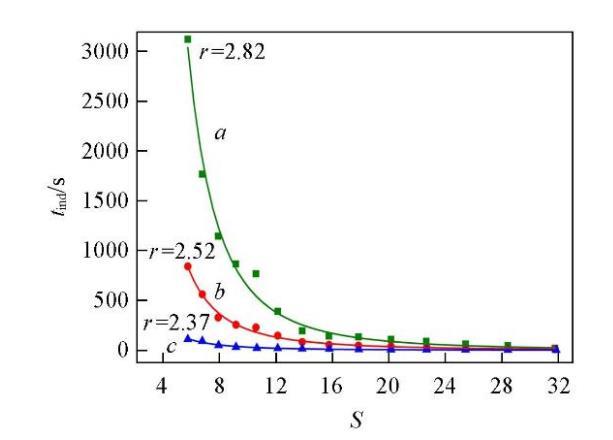 成核誘導(dǎo)期與過飽和度的半經(jīng)驗(yàn)關(guān)系式[33]如下: