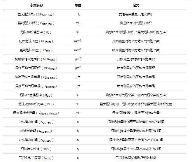 表1泡沫測(cè)試的主要參數(shù)及其定義