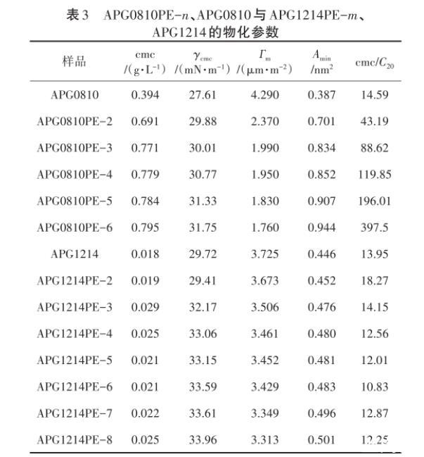表3 APG0810PE-n、APG0810與APG1214PE-m、APG1214的物化參數(shù)
