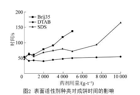 圖2表面活性劑種類對(duì)成餅時(shí)間的影響