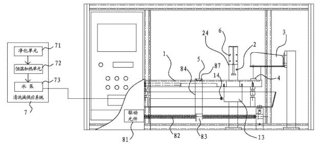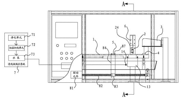 [0018]在一些實施方式中,還包括清洗液供應(yīng)系統(tǒng),清洗液供應(yīng)系統(tǒng)包括凈化單元、恒溫加熱單元和泵體。清洗液通過凈化單元凈化并通過恒溫加熱單元進(jìn)行加熱后,再經(jīng)由泵體供應(yīng)到清洗槽當(dāng)中。其有益效果是,先通過凈化單元,可以預(yù)先清除掉清洗液當(dāng)中可能存在的油。另外,通過恒溫加熱單元可以將清洗液加熱到一定的溫度。因為溫?zé)釥顟B(tài)的清洗液,可以實現(xiàn)更加的油脂清除能力,從而可以將樣品上的油更方便且更完全的清洗下來。