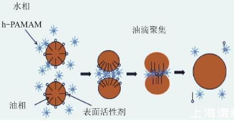 目前,破乳機(jī)理還沒(méi)有統(tǒng)一的理論,h-PAMAM可能的破乳機(jī)理如圖5所示。
