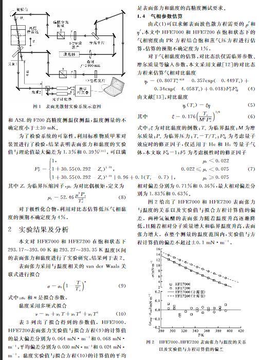本文對(duì)HFE7000和HFE7200在飽和狀態(tài)下293.17~393.00 K和293.27~393.35 K溫度區(qū)間的表面張力和黏度進(jìn)行了實(shí)驗(yàn)研究,結(jié)果列于表2。