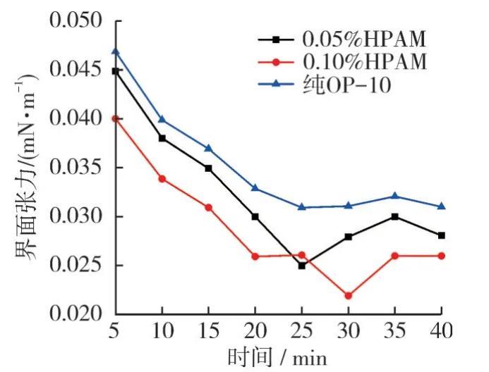 2.3 HPAM和OP-10復(fù)配體系的界面活性