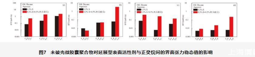 圖7未破殼微膠囊聚合物對延展型表面活性劑與正癸烷間的界面張力穩(wěn)態(tài)值的影響