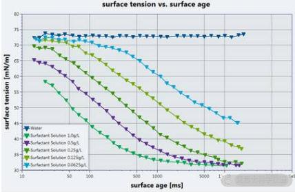 在一些如噴涂,發(fā)泡,清潔,印刷,乳化或涂層過(guò)程中,界面形成非常快,在這些過(guò)程中不僅僅只有表面張力的平衡值起決定作用,界面形成的動(dòng)力學(xué)部分也存在。表面活性劑中的分子移動(dòng)已經(jīng)成為表面或界面張力形成的重要因素。