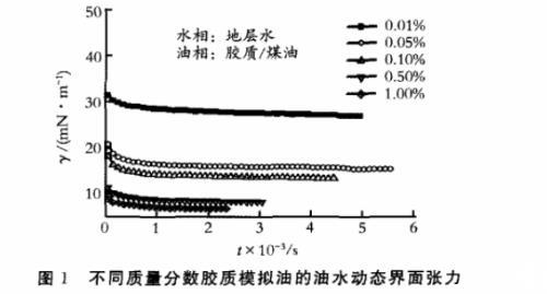 圖1不同質(zhì)量分?jǐn)?shù)膠質(zhì)模擬油的油水動(dòng)態(tài)界面張力