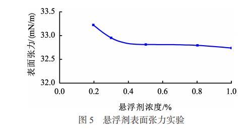 清水的表面張力為69.748mN/m,不同濃度懸浮劑溶液的表面張力值見圖5。