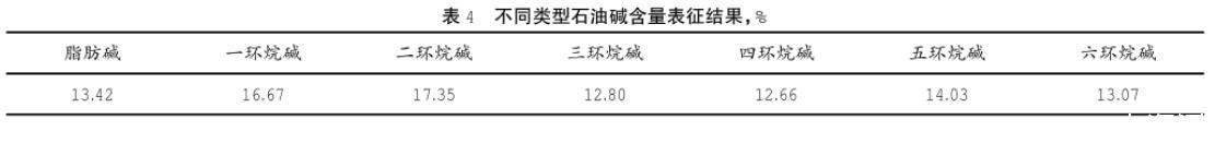 (2)萃出石油堿組分含量為4.46%,相對分子質(zhì)量主要分布在300~700,碳數(shù)對應(yīng)C21~C49,結(jié)構(gòu)以環(huán)烷堿為主;