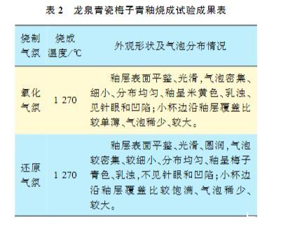 龍泉青瓷的燒制結(jié)果見表2。