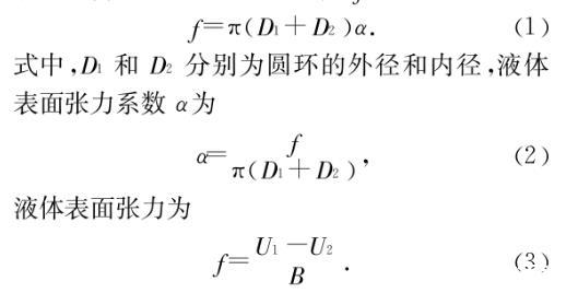式中,D1和D2分別為圓環(huán)的外徑和內徑,液體表面張力系數(shù)α為