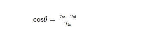 在由顆粒穩(wěn)定的泡沫中,氣泡表面存在不可逆吸附的顆粒層,可以起到抵抗聚結(jié)和粗化的物理屏障作用。顆粒必須首先吸附到表面上才能實現(xiàn)穩(wěn)定泡沫的功能。通常認為,顆粒在空氣/液體表面的吸附與顆粒的潤濕性相關(guān),該潤濕性通過顆粒與空氣/液體界面的接觸角來量化,可由楊氏方程計算得到: