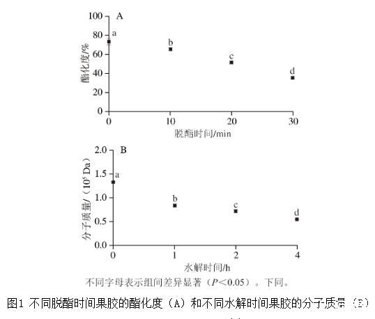 2.1不同果膠的酯化度、分子質(zhì)量分析