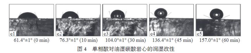 圖4單相酸對(duì)油濕碳酸巖心的潤濕改性
