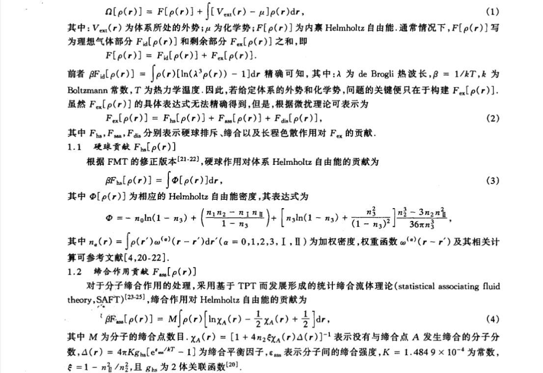1.2 締合作用貢獻(xiàn) Fas[ρ(r)]