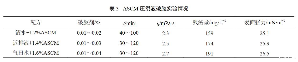 表3 ASCM壓裂液破膠實驗情況