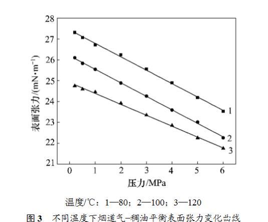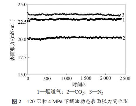 6)在一定的壓力和溫度條件下,每個煙道氣-稠油系統(tǒng)的表面張力測定重復3次,以保證較好的重復性。