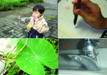 細(xì)心觀察蓮花、芋頭葉及甘藍(lán)菜的葉面,我們發(fā)現(xiàn)水珠可以在這些葉面上自由的滾動。自來水筆的墨水不會因地心引力而滴出、毛筆上的墨汁不會掉下來。水滴在水龍頭下會慢慢形成一個(gè)球狀的液滴再滴下來,肥皂泡泡吹出來不會破。這些現(xiàn)象都是和表面張力有關(guān)。水珠能在荷葉上自由的滾動,這是因?yàn)樗谌~面上的接觸角介于130~160度之間,接觸角大顯示出水珠不易潤濕表面。而自來水筆的墨水不會滴出來以及毛筆的墨汁不會掉下來是因?yàn)橐后w的毛細(xì)管現(xiàn)象。因?yàn)槊?xì)管的水與管壁的接觸角小于90度,表示水與管壁的附著力較水分子間的內(nèi)聚力大,由于附著力與表面張力的相互作用,一垂直毛細(xì)管端的液滴會被吸住,并和重力達(dá)到平衡,這就是自來水筆的墨水不會因地心引力而滴出的原因。而便宜的原子筆往往因表面張力的控制不良而不順暢或油墨溢出。毛筆上的墨汁不會掉下來也是毛細(xì)現(xiàn)象的關(guān)系。