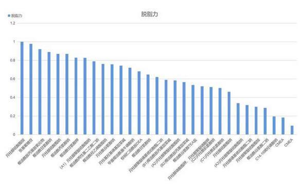 從上述數(shù)據(jù)中可以看出,在規(guī)定條件下,脫脂力最強的是月桂醇硫酸酯銨,脫脂力最弱的是兩款CMEA;