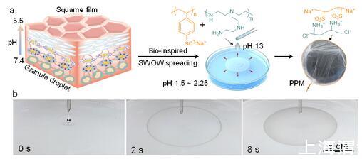 圖1受皮膚分化過程啟發(fā)的水-水鋪展與聚電解質(zhì)膜制備機制