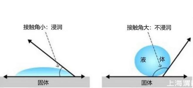 其實,這種現(xiàn)象在物理學上叫浸潤與不浸潤,由接觸角的大小來區(qū)分。