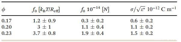 在模擬中,f0以kBT/Reff為單位,這是因?yàn)镽eff是距離單位,kBT是能量單位。因此,在用物理單位表示f0時(shí),必須考慮T和Reff的不確定性。然而,經(jīng)過誤差分析,我們發(fā)現(xiàn)Df0僅由(Df0)Df的貢獻(xiàn)決定。
